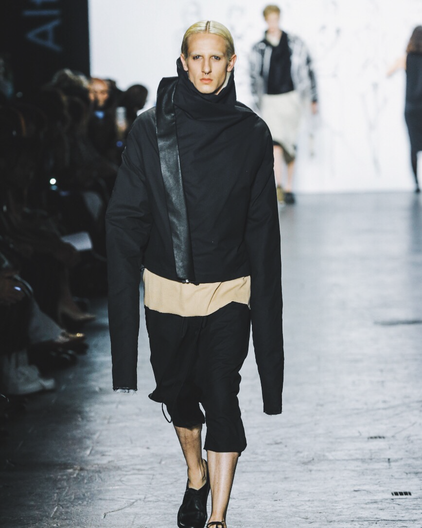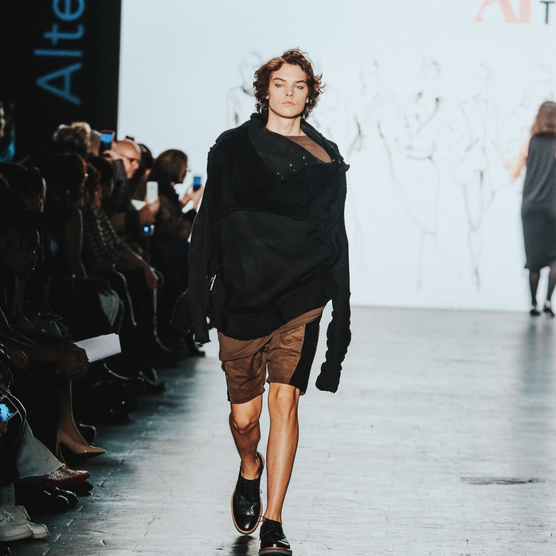 "The ever-changing life and constantly evolving environment of an Urban Nomad inspired my collection for Fall2016. I used a touch of brown, black and grey and with a sophisticated New York twist throughout my collection."